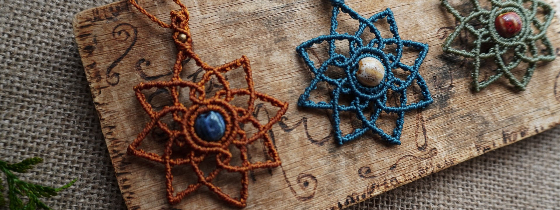 De nuestras manos surgen piezas únicas de macramé, cargadas de historia y energía natural. Cada piedra guarda un viaje, cada tejido refleja la libertad de vivir en movimiento y la belleza de lo simple.