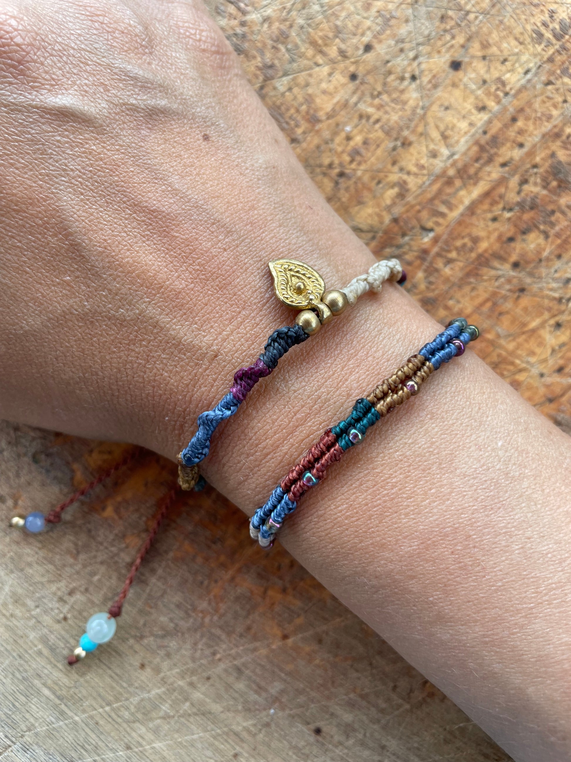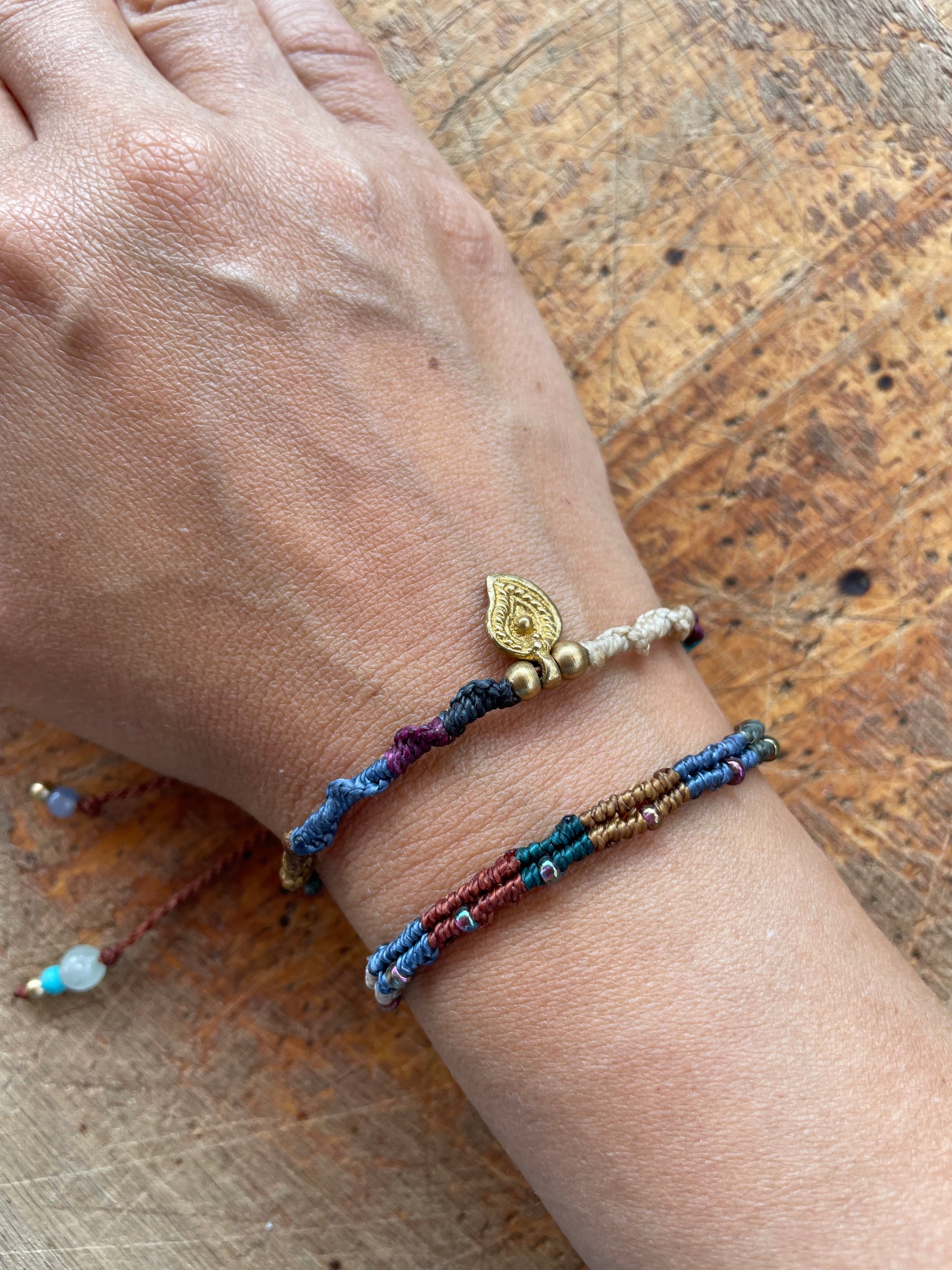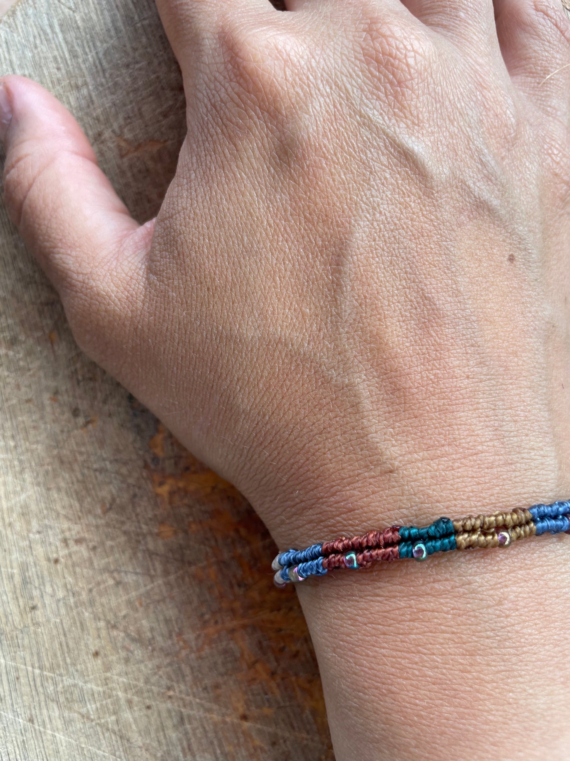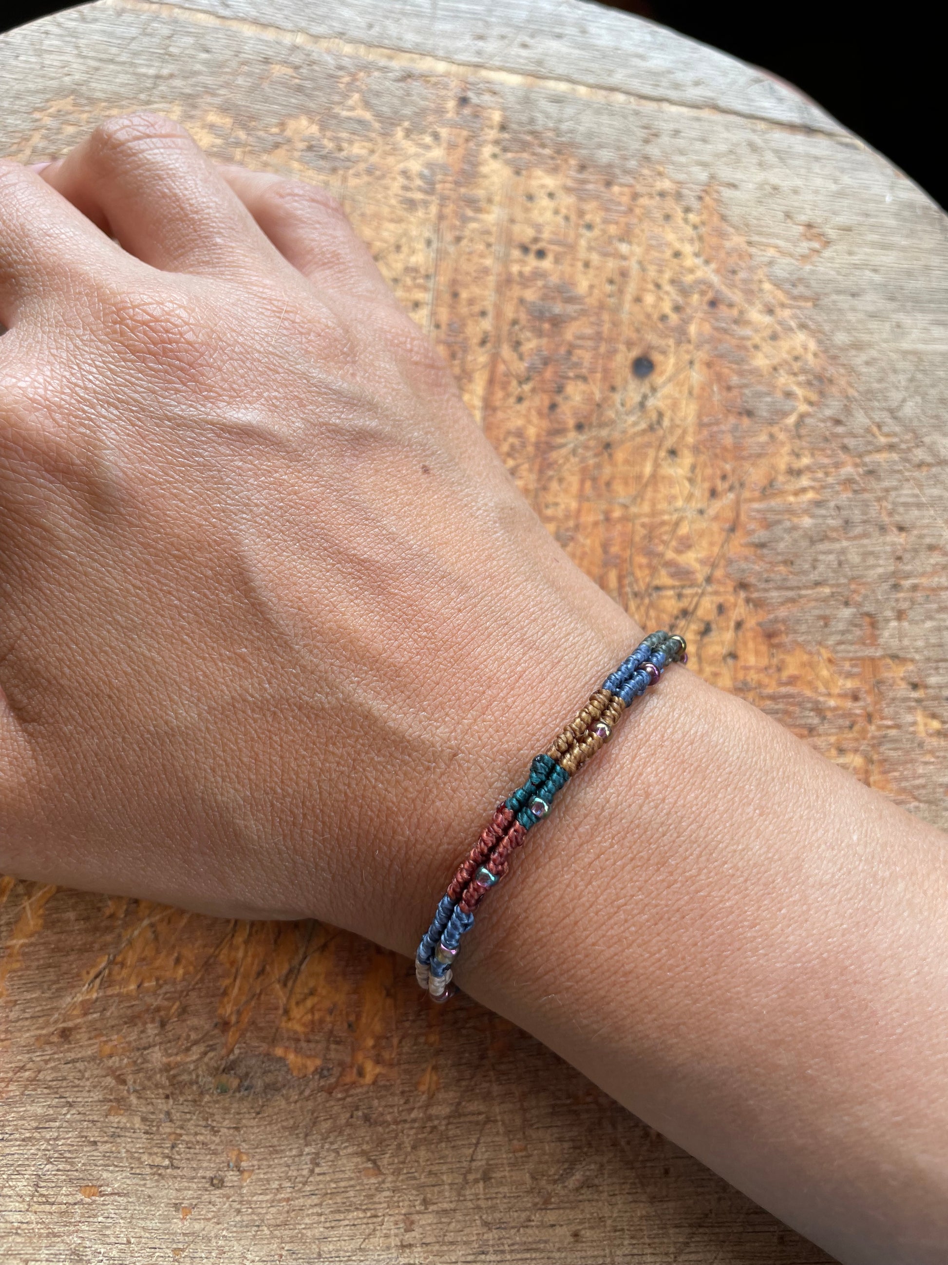 Descubre la belleza de la colección raíces nómadas con nuestra pulsera de hilo encerado y cuentas de cristal checo. Una pieza de colección que te conectará con la antigua tradición de los viajeros. Lleva contigo una parte de la historia y deja que su elegante diseño te inspire a explorar el mundo.