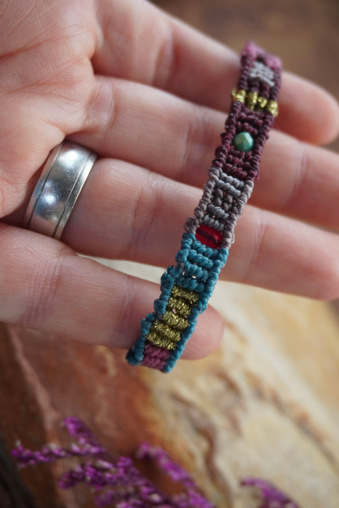 Pulsera tejida en macramé con una combinación vibrante de colores.