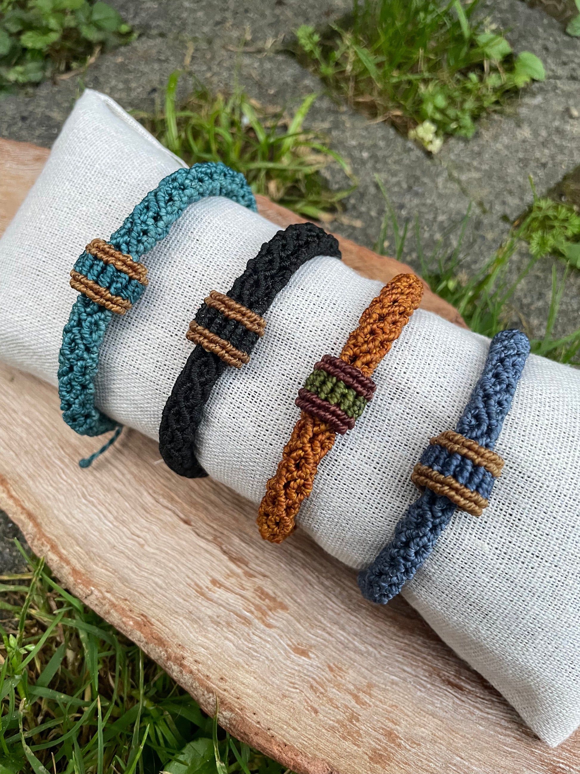 Pulsera tubular hecha a mano en macramé con hilo encerado de alta calidad.