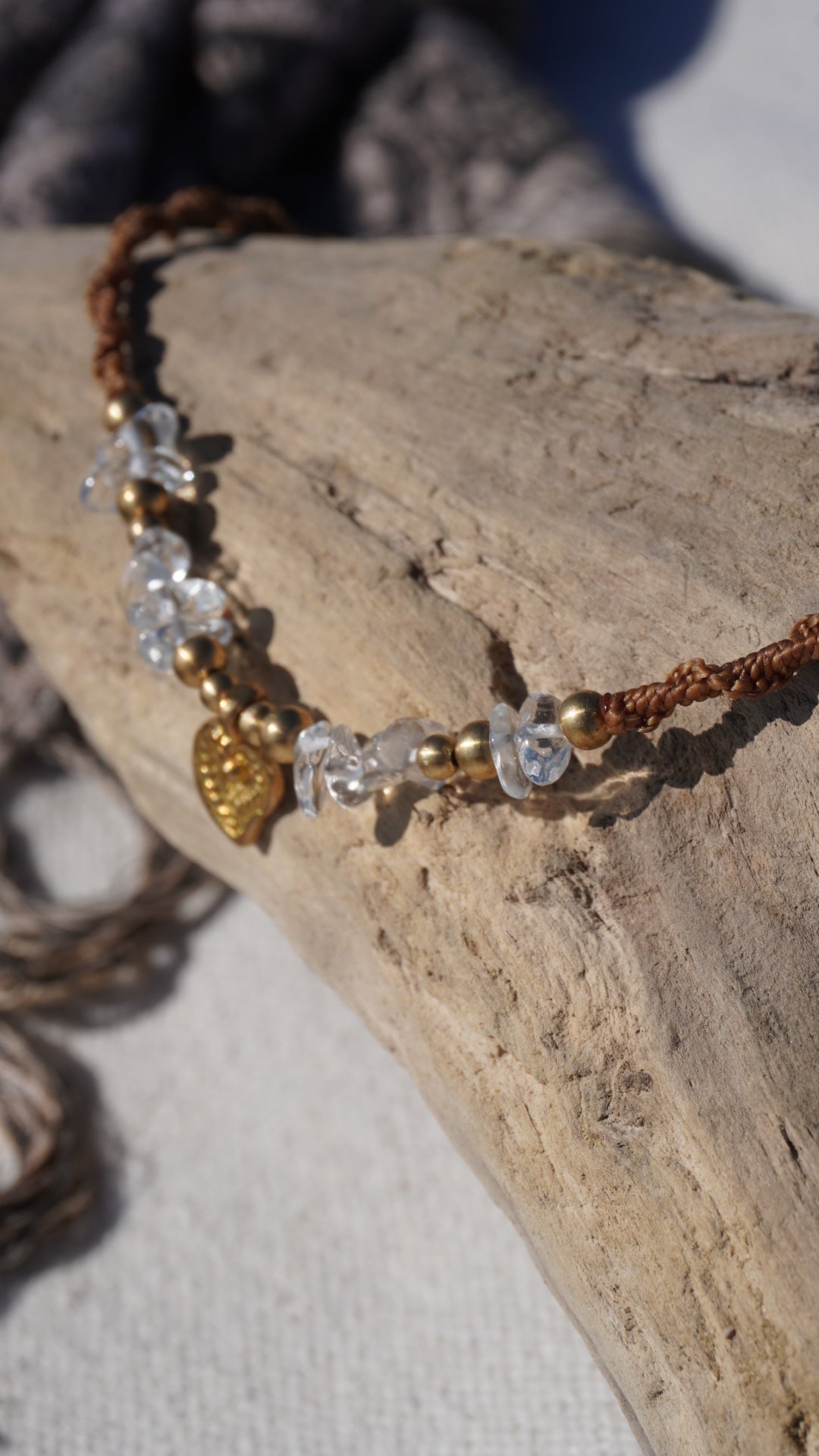 🌿Gargantilla macramé toque de color marrón y adornada con minerales que la hacen única. Ajustable para adaptarse a cualquier tamaño.