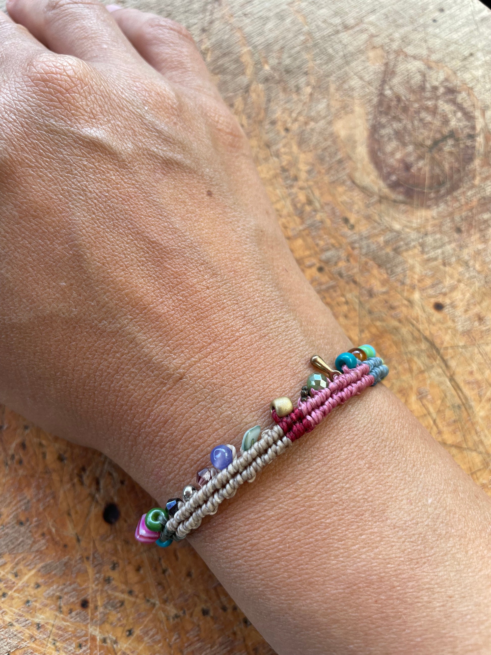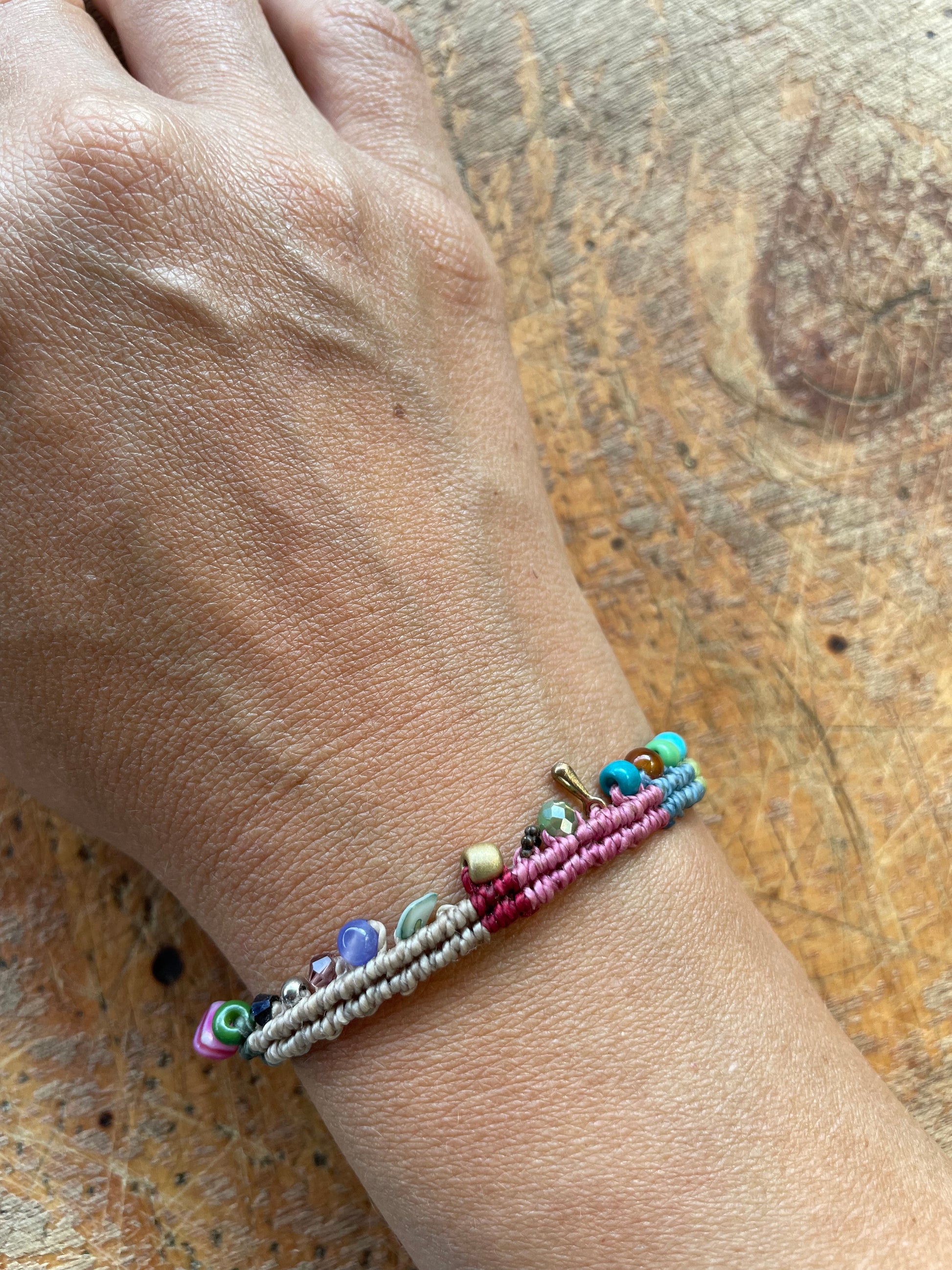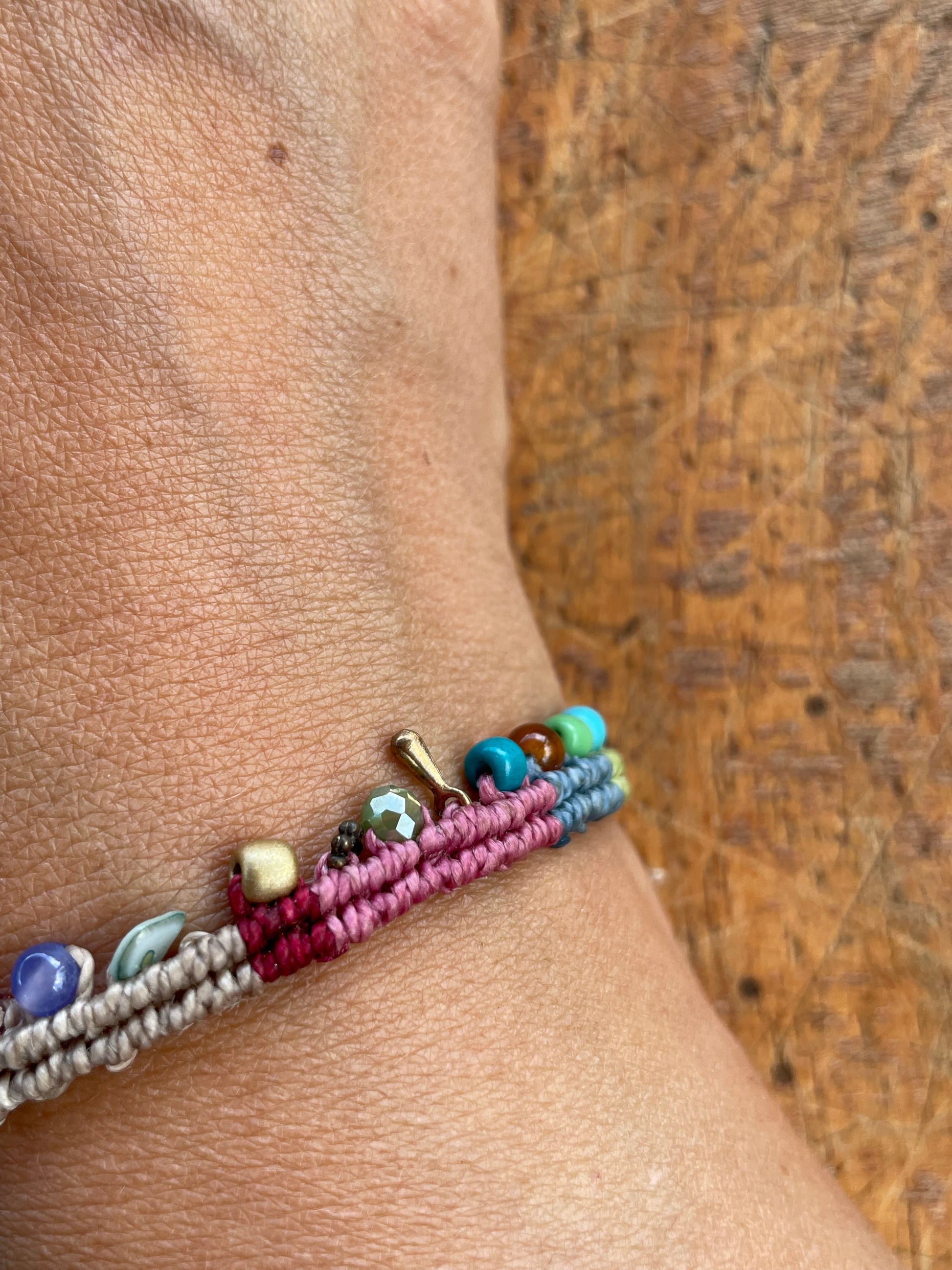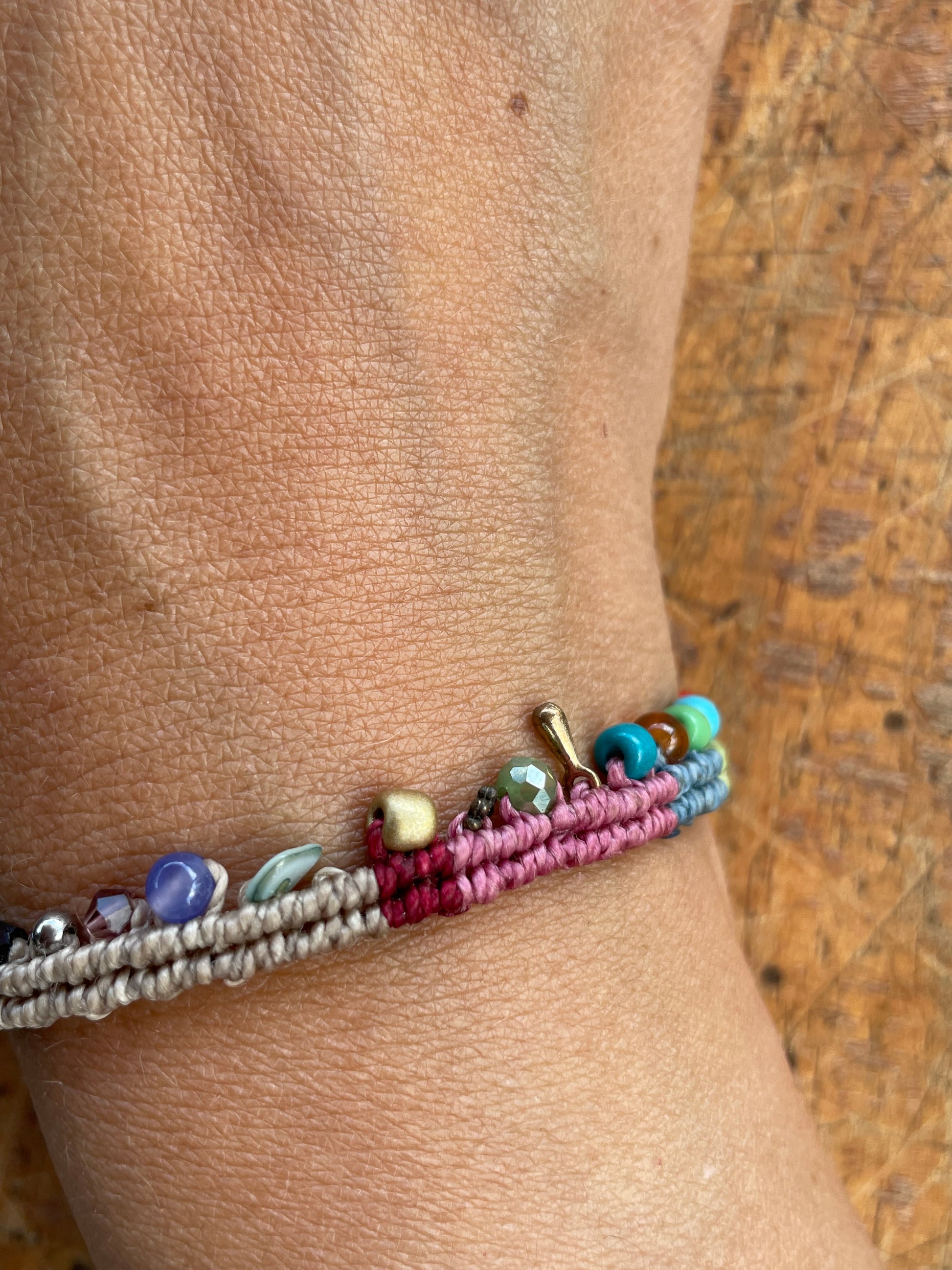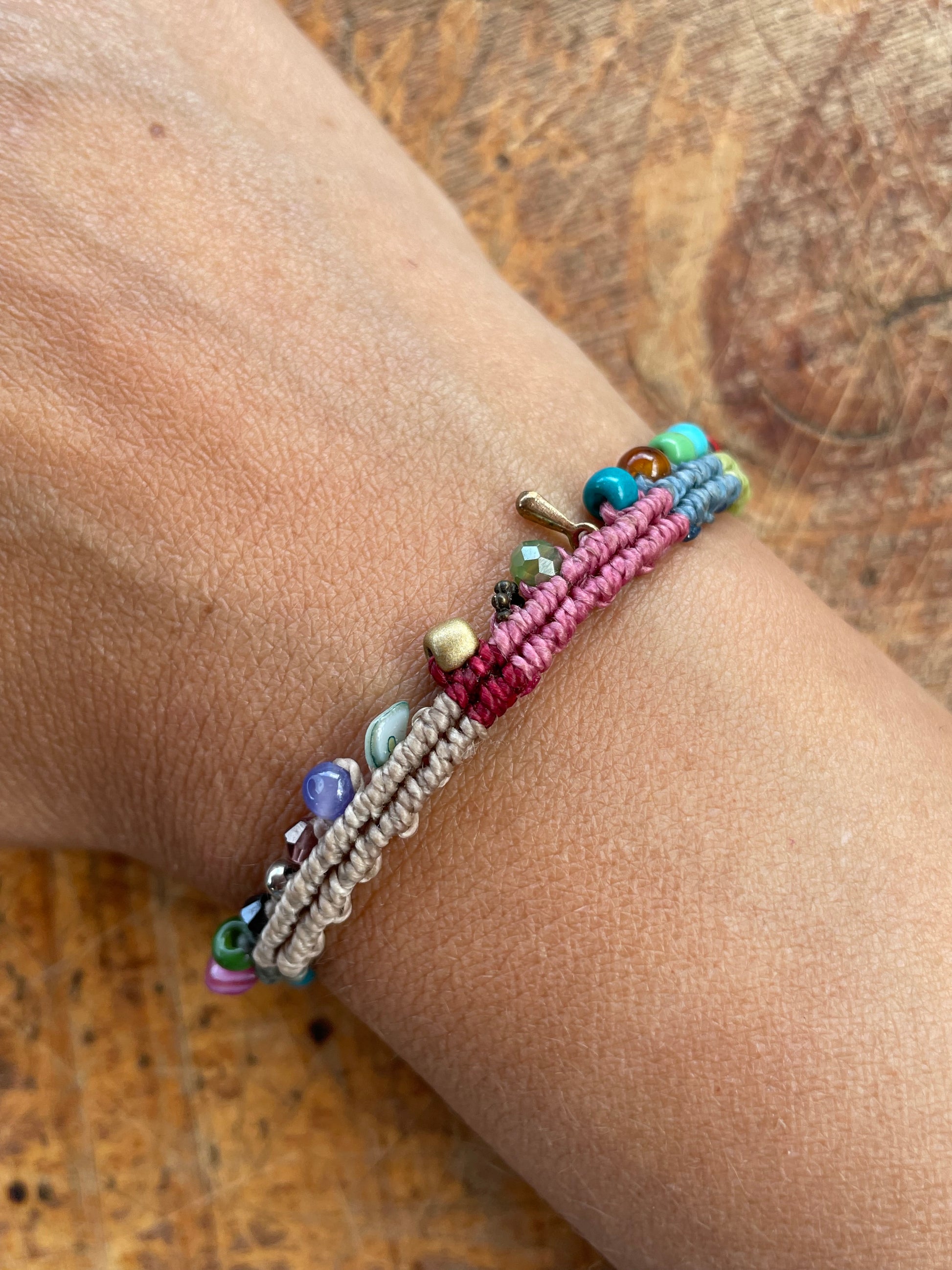 Descubre la belleza de la colección raíces nómadas con nuestra pulsera de hilo encerado, cuentas de cristal Checo, y latón. Una pieza de colección que te conectará con la antigua tradición de los viajeros.